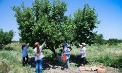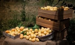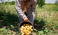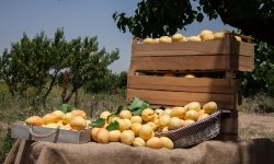 Annual average crops are 300-400 tons of apricots, 2-5 tons of peaches, 1-3 tons of apples, 1-2 tons of cherries, 3-5 tons of plums, and up to 5 tons of grapes. Quince trees have not matured to fruitage age yet.