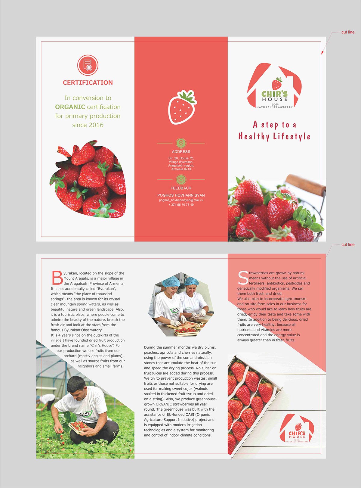 | Ընկերության պատմությունը, տեսլականը, առաքելությունը | Արտադրությունն սկսվել է 2016 թվականին: Ընկերության կարգախոսն է՝ «Քայլ՝ դեպի առողջ ապրելակերպ»: Ջերմոցի կառուցումը ֆինանսավորվել է ԵՄ «ՕԳԱՆ» («Օրգանական գյուղատնտեսության աջակցության նախաձեռնություն») ծրագրի շրջանակում: Ընկերությունը ծրագրում է ընդլայնել առաջարկվող ծառայությունները՝ ներառելով նաև ագրոտուրիզմը: |